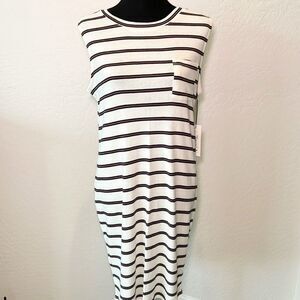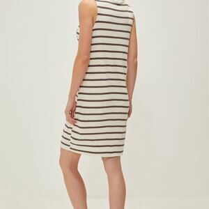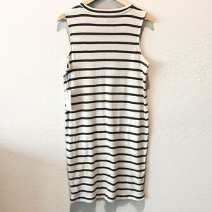 Three Dots Tank Dress Soft Stretch Knit Cream Black Stripe Sleeveless M NWT