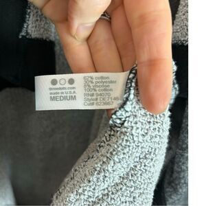 Three Dots Terry Gray Black Long Sleeve Open Front Cardigan Sweater Medium