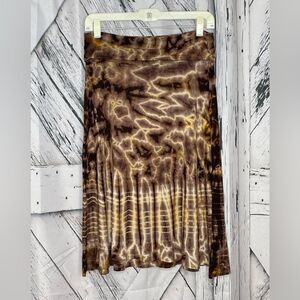 Brown tie dye pull on a-line skirt with a fold over waistband