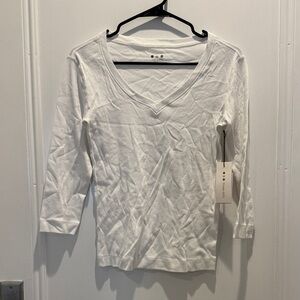 Three Dots White Long Sleeve V-Neck Top