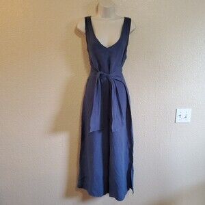 Three Dots Wide Leg Linen Jumpsuit S Navy Blue New