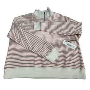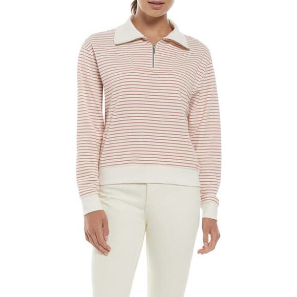 Three Dots Womens Arta Quarter Zip Striped Sweater Dusty Cedar - L New