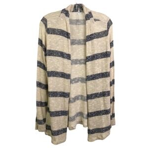 Three Dots Women's Cardigan Sweater Beige Gray Striped Long Sleeve Open Front XS
