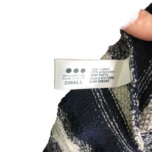 Three Dots Women's Cardigan Sweater Blue Striped Boho Open Front Cotton Sz S