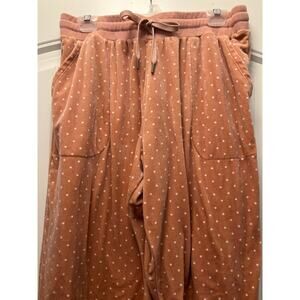 Three Dots Women’s High Waisted Velvet Polka Dots Soft Lounge Pants Size XL Pink