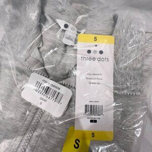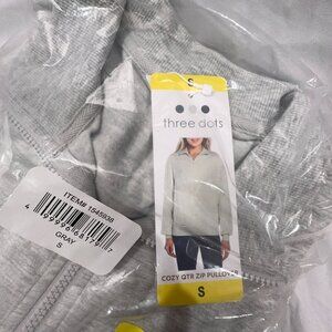 Three Dots Womens Ribbed Cuff Quarter Zip Pullover Sweater Heather Gray Size S