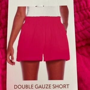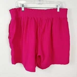 Three Dots Women's XXL Double Gauze Short Pink Smocked Waist Pockets Cotton NWT