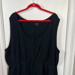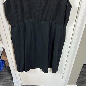 Three Dots black casual dress. 3/4 sleeve, knee length. Thicker cotton fabric skirt. Textured upper half with button closure at front. Round neck. 100% cotton. Size large