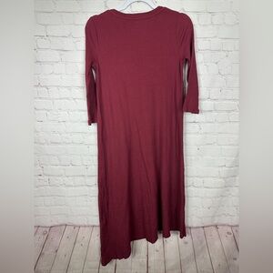 Three Dots supima cotton modal thermal Pullover midi 3/4 slv Dress red sz S GUC