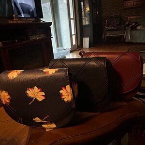 CHOICE of Three Draper James Crossbody bags: burgandy, black & floral.
