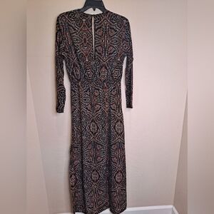 Size Small. New with tags. Same style as stock photo. however this one has the underskirt but you can't see through the print. Pit to pit 18" approximately and Length 56" approximately. Slit on the side is 25" approximately. Soft polyester. Partially lined.