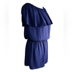 An off shoulder romper with a ruffle wrapping around