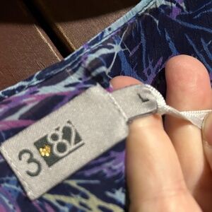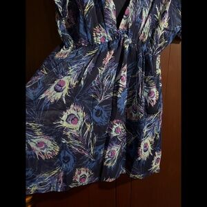 Three Eighty Two V-Neck Flowy Peacock Feather Print Mini Dress Size L - NWT
