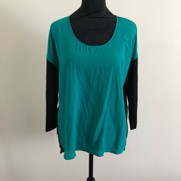 Three Eighty Two Women's Colorblock Long Sleeve Tunic Top XS Black/Teal NWT