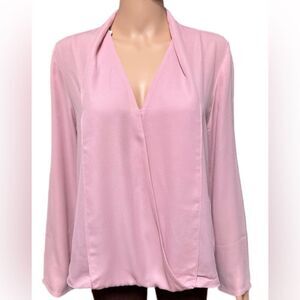 Three Eighty Women’s Blouse Soft Pink Drape Front Long Sleeve Top Size Large (NWT)