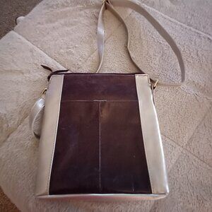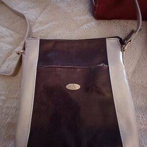 Three super cute shoulder bags. Maroon/Red in the middle of the 1st picture is genuine leather, has that great leather smell. Silver and Eggplant Aurielle on the left is leather, Green Treviso on the right is vegan leather.