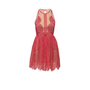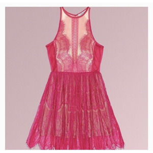 Three Floor Halter Mini Dress Hot Pink Fuschia Lace Open Back