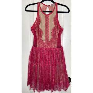 Three Floor Mini Dress Hot Pink Fuschia Lace Open Back Size 12