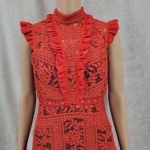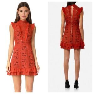 Three Floor Sienna Ruffles A-line Dress in Rust Red Women's XXS/2 Lace Panel