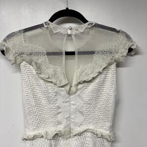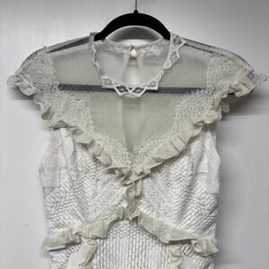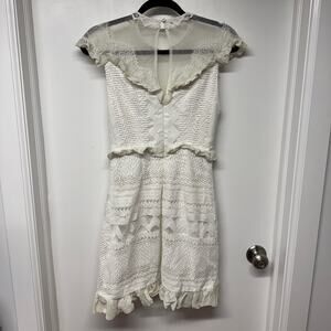 Three Floor Womens White Lace in Line Mini Dress Frilly Ruffles Size 6 Small