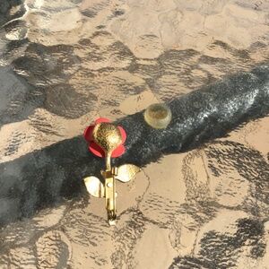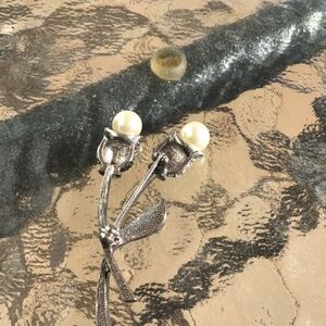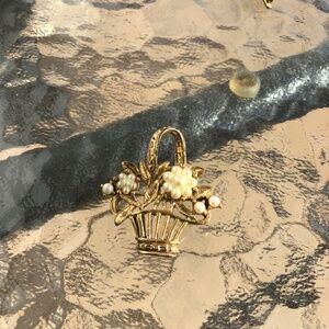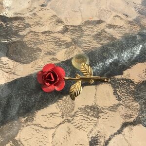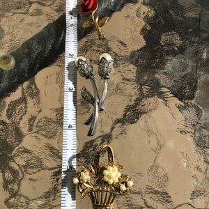 Three Flower Brooches Gold, Silver, Red, Pearl