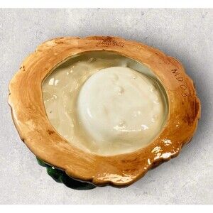 Ceramic high gloss planter shaped like a shallow dish, signed by MD for Cardinal Designs in 2003. Hand-painted in greens and browns, it features three frogs and is suitable for a 3-wick candle, extra change or plant. Contemporary in style, it is handmade and glossy finished, measuring 3 inches in length and 6.5 inches in width. Weighing 2 lbs, air plant not included.