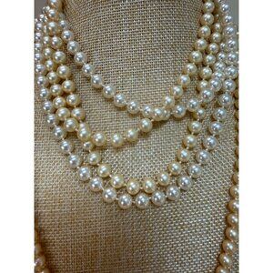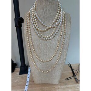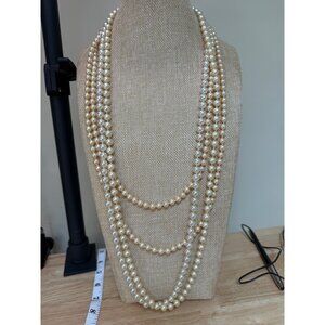 Three Glass Pearl Necklaces In Cream & Ivory Tones 26"-34" Long