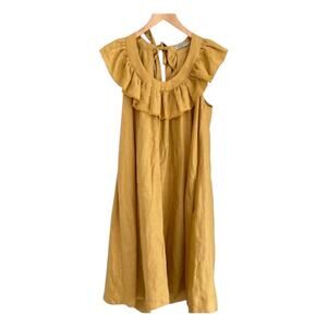 Three Graces Dress Womens Small Linen Midi Dress Oversized Ruffle Milkmaid