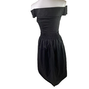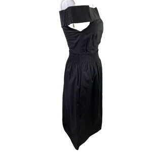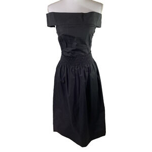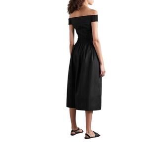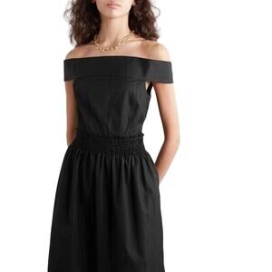 Three Graces London Black Off Shoulder Midi Dress Smocked 100% Cotton Pockets