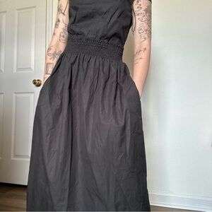 Super cute dress with pockets! 100% cotton-poplin. There is a side zipper in the bodice. In great condition and very well made. Three Graces London is one of my favorite brands.