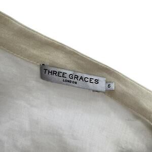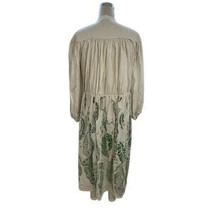 Three Graces London Maxi Dress Size 6 Tan with Green Leaf Print