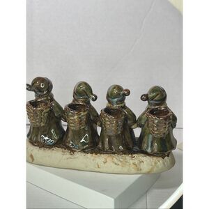 3 hands Corp snowman corp. 4 candle candle opera . 10” wide and approximately 6” tall. Candles not included. Extremely clean.This is in great shape and only wear on bottom. Some discoloration and chips along the edges on bottom.
