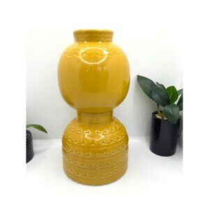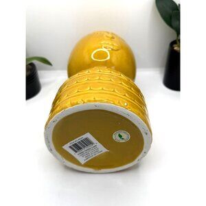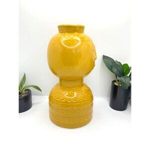 This unique three hands yellow porcelain vase features an artistic face design, adding character to any space. Its eye-catching color and texture create an elegant statement piece. Approx. size 5 in. L x 5 in. W x 10 in. H