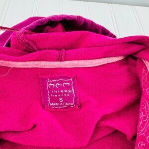Three Hearts Womens Embroidered Pink Hoodie Jacket Zip-Up Small Plum
