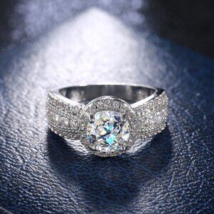 "Three Layer Dainty Shiny Zircon Full Around Luxury Rings for Women, EVGG1392