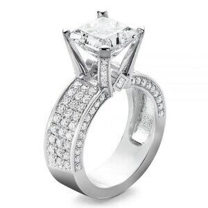 Three Layer Full Zircon Square Shiny Princess Cut Luxury Rings for Women, PD002