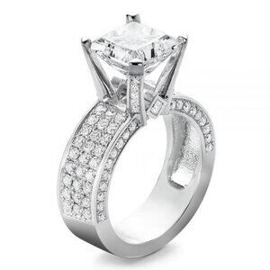 Three Layer Full Zircon Square Shiny Princess Cut Luxury Rings for Women, PD004
