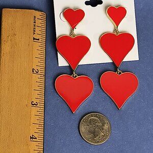 Three Layer Heart Dangling Drop Post Push Back Earrings Statement Any Occasion