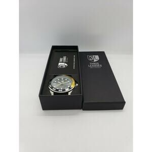 Three Leagues Baden TLW3L104 Men's Watch, Black Face, Leather Strap Coke Bezel. Condition is New