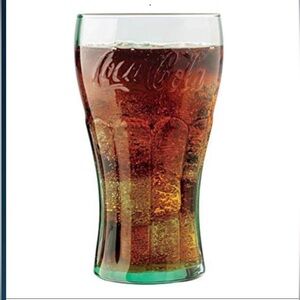 Three Light Green Coca Cola Embossed Contoured Drinking Glasses Tumblers