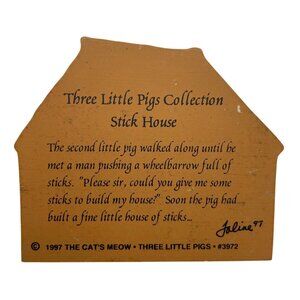 Add charming character to your home with these delightful wooden shelf sitters from The Cat's Meow 1997 Three Little Pigs Collection (4 of 5). These pieces offer a nostalgic touch, perfect for book lovers and collectors alike. Showcase the classic tale of the Three Little Pigs in a unique and endearing way. Initiated September 1, 1997 and Retired December 31, 2002.