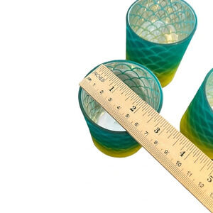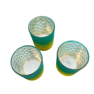 Three Mermaid 4” Votive Holders Cups New Graded Color Green Yellow Silver