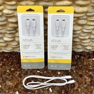 Three New Ativa USB 2.0 Type C to-Micro USB Type-B Cable, 3.28', White, 35575