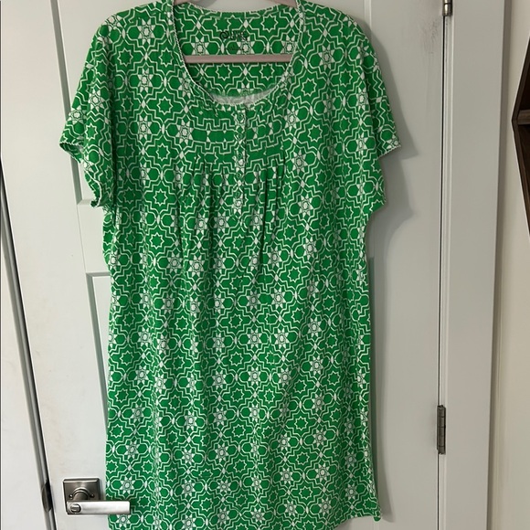 This vibrant green chemise features a stylish pattern, perfect for a comfortable and chic look. Three pieces total that are in good used condition. Two larges and one XL.