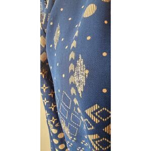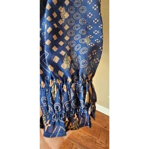 Three Pears Geometric Long Sleeve Smocked Drop Waist Mini Dress Blue Womens M