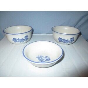 The three Pfaltzgraff prep/sauce/dip bowls are a set of round stoneware bowls featuring a traditional Yorktowne design with a flower theme. These vintage bowls are perfect for all occasions and are part of the 21st-century era. Produced using an art pottery technique, these original Pfaltzgraff bowls are a charming addition to any table setting, adding a touch of nostalgia to your dining experience.