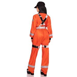 Suit up for out-of-this-world style with the 3 PC Cosmic Astronaut Costume, a sleek and stylish look designed for bold space babes. This set includes a zip-up jumpsuit with reflective trim and functional pockets, a metallic body harness that adds futuristic flair, and a matching astronaut hat to complete your galactic transformation.