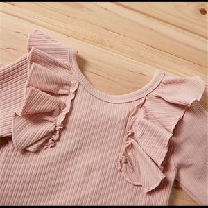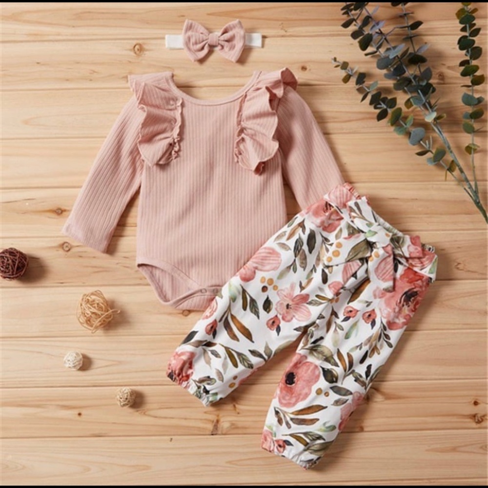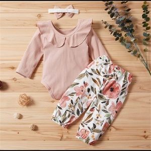 Girl long sleeve romper, printed flower pants and head band.