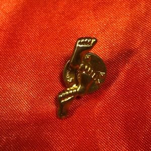 All pins are in excellent condition, two blue ribbon pins, the smaller of the two has gold edge, small Footprints In the Sand pin