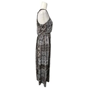 This sleeveless maxi sundress by Three Hearts features a chic halter neckline, perfect for resort wear. The black and white color scheme offers a timeless elegance, while the relaxed skirt ensures comfort and style. Intricate lace detailing adds a sophisticated touch, making it a standout piece for any wardrobe.